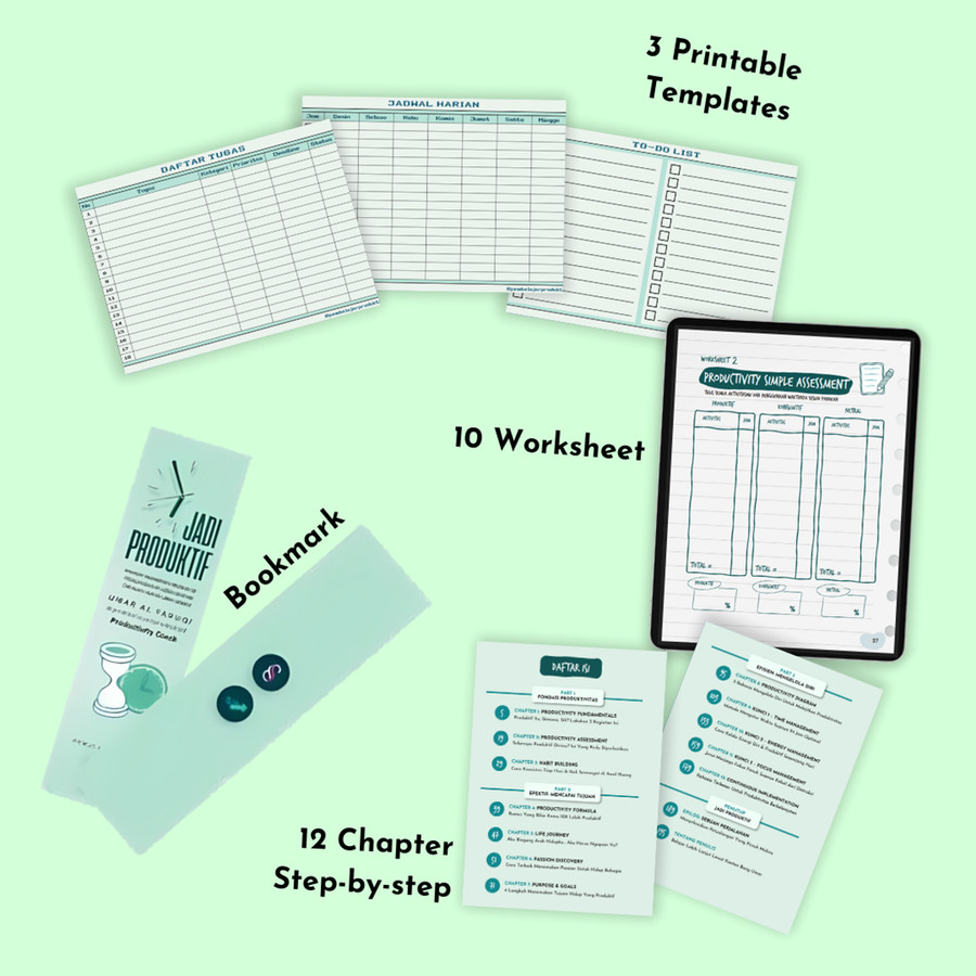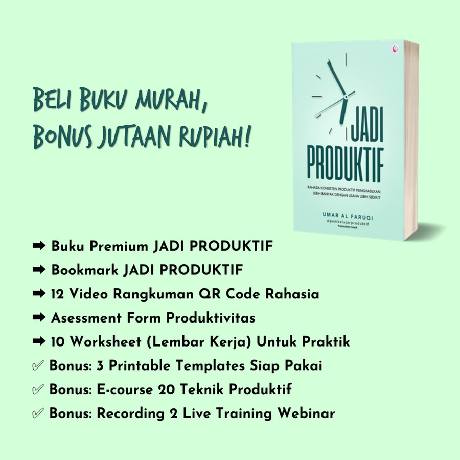 Kamu enggak cuma butuh SEMANGAT, justru kamu perlu kuasai TEKNIK untuk beneran #JadiProduktif. Kamu udah tahu perlu atur waktu, yang kurang hanya CARA YANG EFEKTIF. Kamu sudah paham harus kurangi distraksi dan menunda, yang kamu butuh cuma METODE YANG TEPAT. Kamu sudah ngerti pentingnya nulis tujuan dan target, yang perlu itu SISTEM YANG TERUKUR.